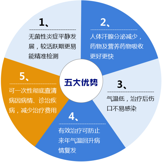 在炎症相对静止期通过深层祛炎治疗将无菌性炎症清除干净,避免来年春夏季机体代谢旺盛、血液循环加速导致炎症爆发、病情急性发展再次疼痛,即治未发病。