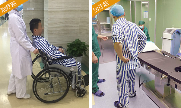 强直患者活动受限、驼背的根源是肌腱、韧带组织粘连,关节间隙变窄,因此抗粘连是阻断病情发展的关键。以高频合体水针抗粘连术可视靶向介入方式,松解粘连组织,注入O3等活性物质,改善局部血液循环,防止再次粘连。
